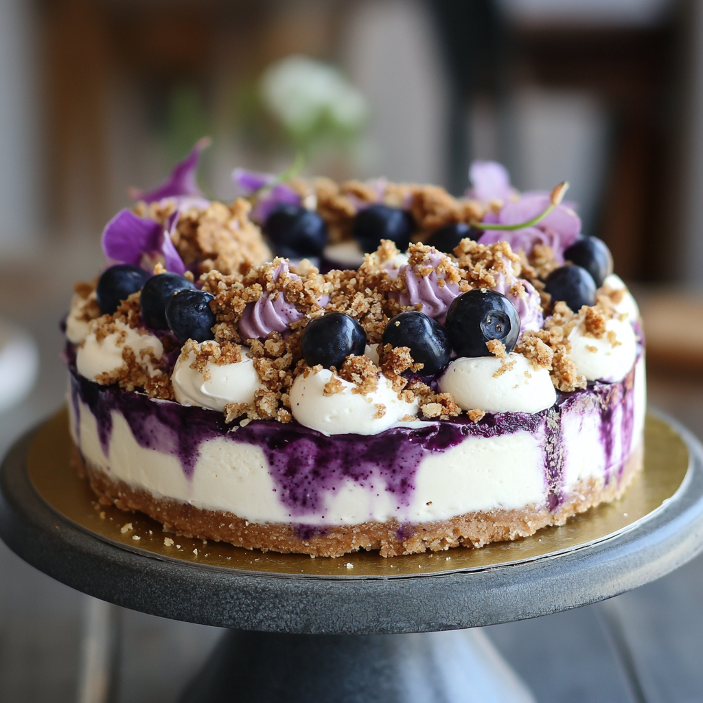 Indulge in the delightful combination of creamy cheesecake and crunchy crumble with this Blueberry Crumble Cheesecake recipe. This dessert features a buttery cookie crust, a velvety cheesecake filling enriched with fresh blueberries, and a sweet crumble topping that adds texture and flavor. Perfect for gatherings or as a special treat at home, this dessert is sure to impress with its stunning presentation and irresistible taste. Each slice offers a harmonious blend of rich creaminess balanced by tart blueberries, making it a truly satisfying dessert for any occasion.