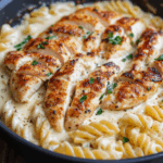 Indulge in the flavorful delight of Cajun Garlic Chicken with Creamy Mozzarella Alfredo Twisted Pasta. This comforting dish combines succulent chicken seasoned with zesty Cajun spices and a rich, creamy mozzarella Alfredo sauce that envelops twisted pasta. Perfect for busy weeknights or special gatherings, this one-pan meal is quick to prepare and easy to serve, ensuring minimal cleanup. With its irresistible blend of flavors and textures, it’s bound to be a hit with family and friends alike.