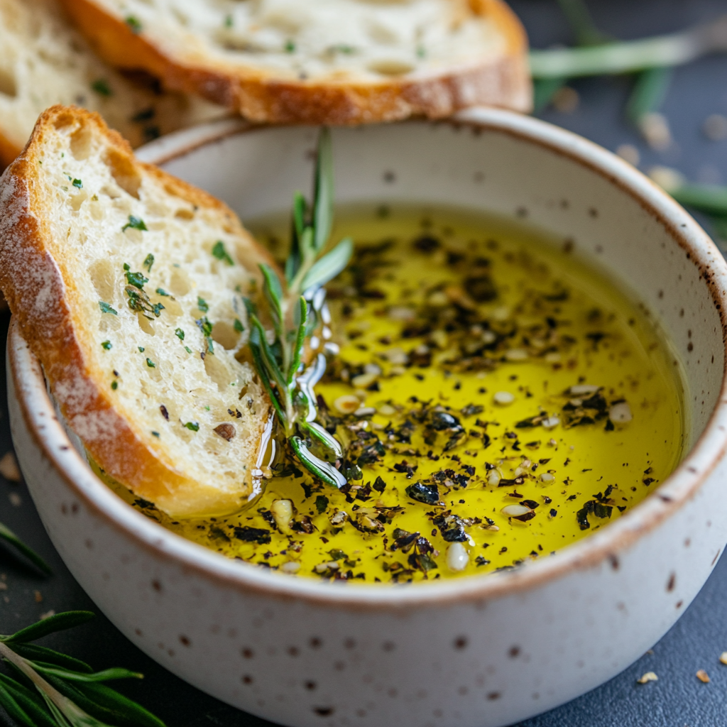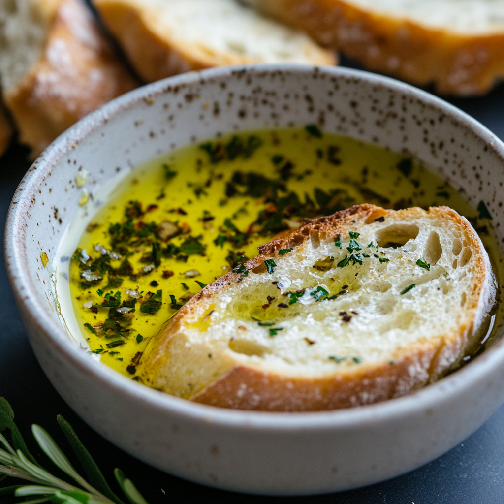 • Use a variety of crusty breads, like ciabatta or baguette, for dipping. Their texture holds up well against the olive oil and herb mixture.