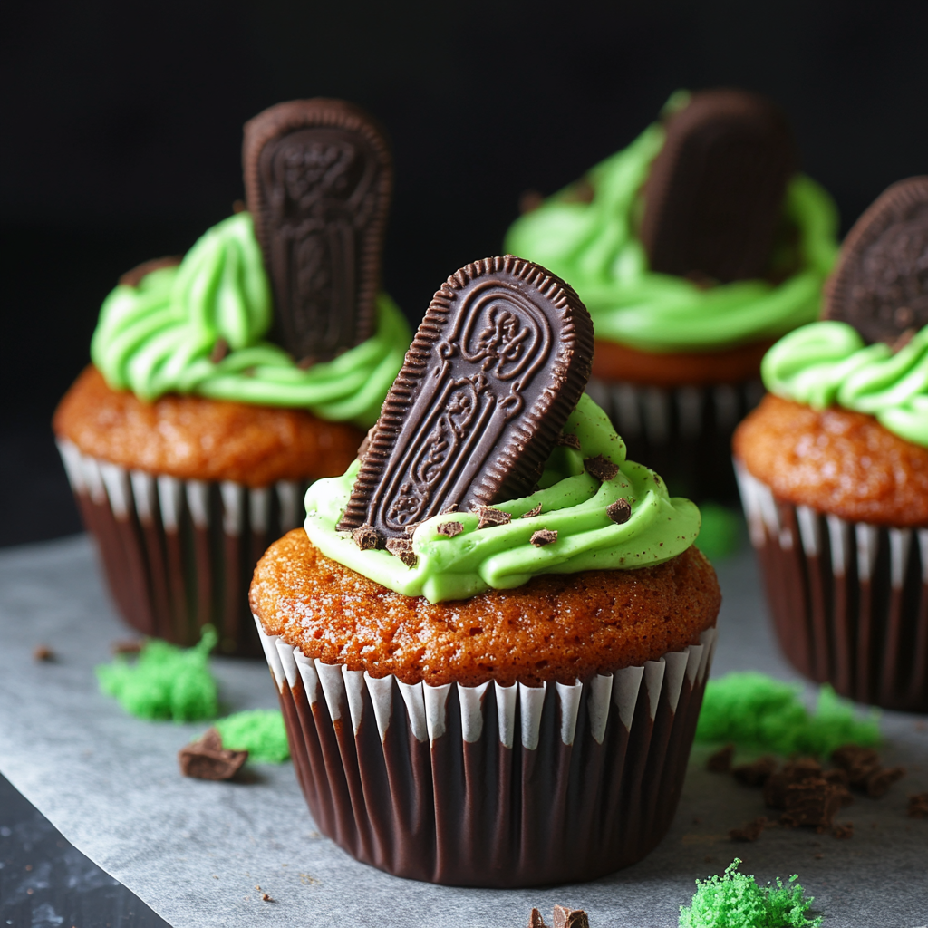 Create spooky and delicious Halloween Graveyard Cupcakes that everyone will love! Perfect for your next party—try this fun recipe today!