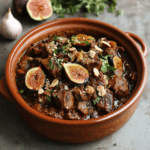 Enjoy your Moroccan Lamb Tagine with Figs, Almonds & Warm Spices!