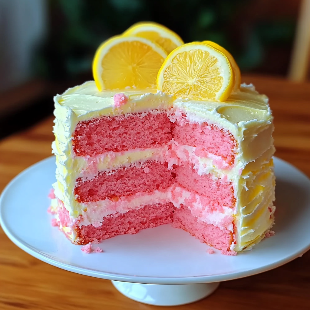 Indulge in the delightful Pink Lemonade Cake, a refreshing dessert that perfectly balances sweet and tangy flavors. This stunning cake features soft layers of lemon-infused cake, complemented by vibrant pink lemonade buttercream frosting and garnished with luscious raspberry jam and fresh lemon slices. Whether you’re celebrating a birthday, hosting a spring gathering, or simply treating yourself, this cake is sure to impress with its beautiful presentation and delicious taste.