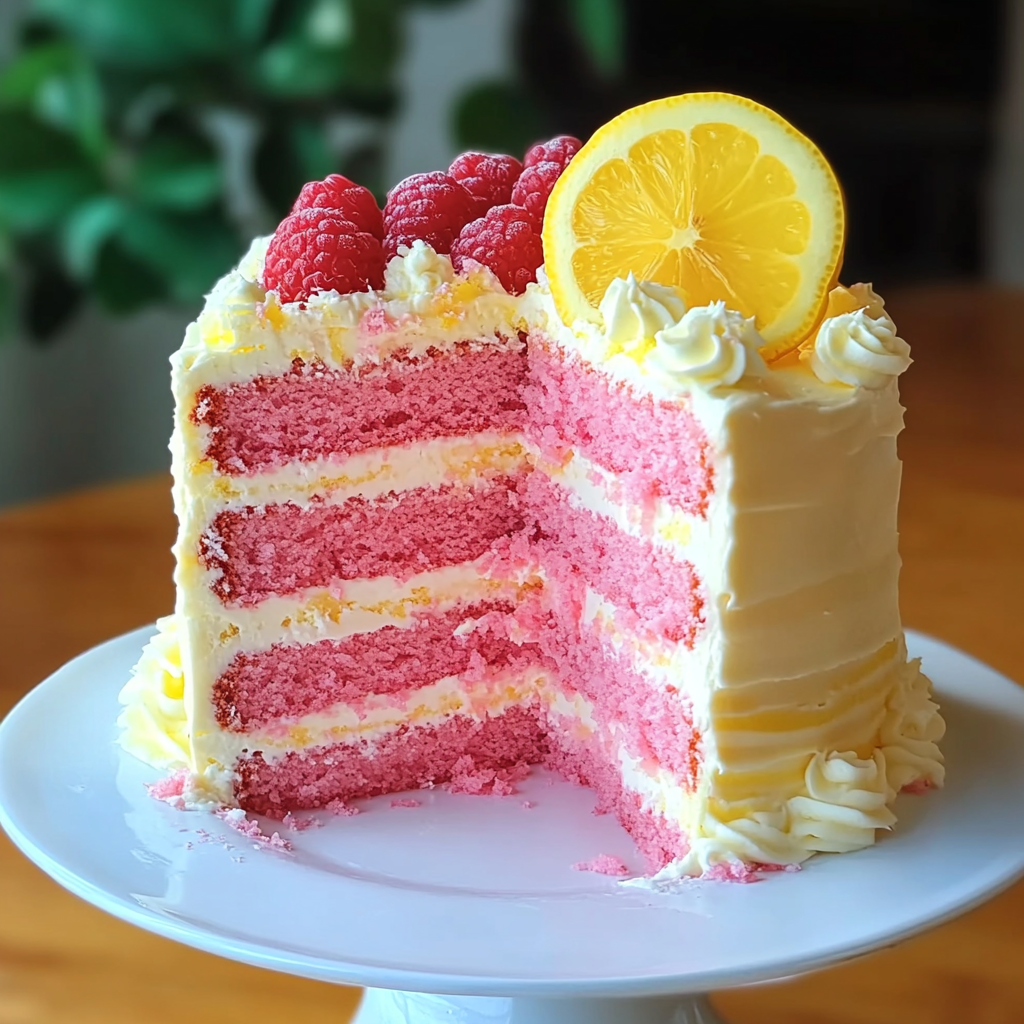 This Pink Lemonade Cake is a delightful dessert bursting with fresh, tangy lemon flavor and sweet raspberry jam. Perfect for any celebration, this stunning cake features soft layers of lemon cake, vibrant pink lemonade buttercream frosting, and elegant raspberry and lemon garnishes. Its bright flavors and beautiful presentation make it a showstopper that will impress your guests!