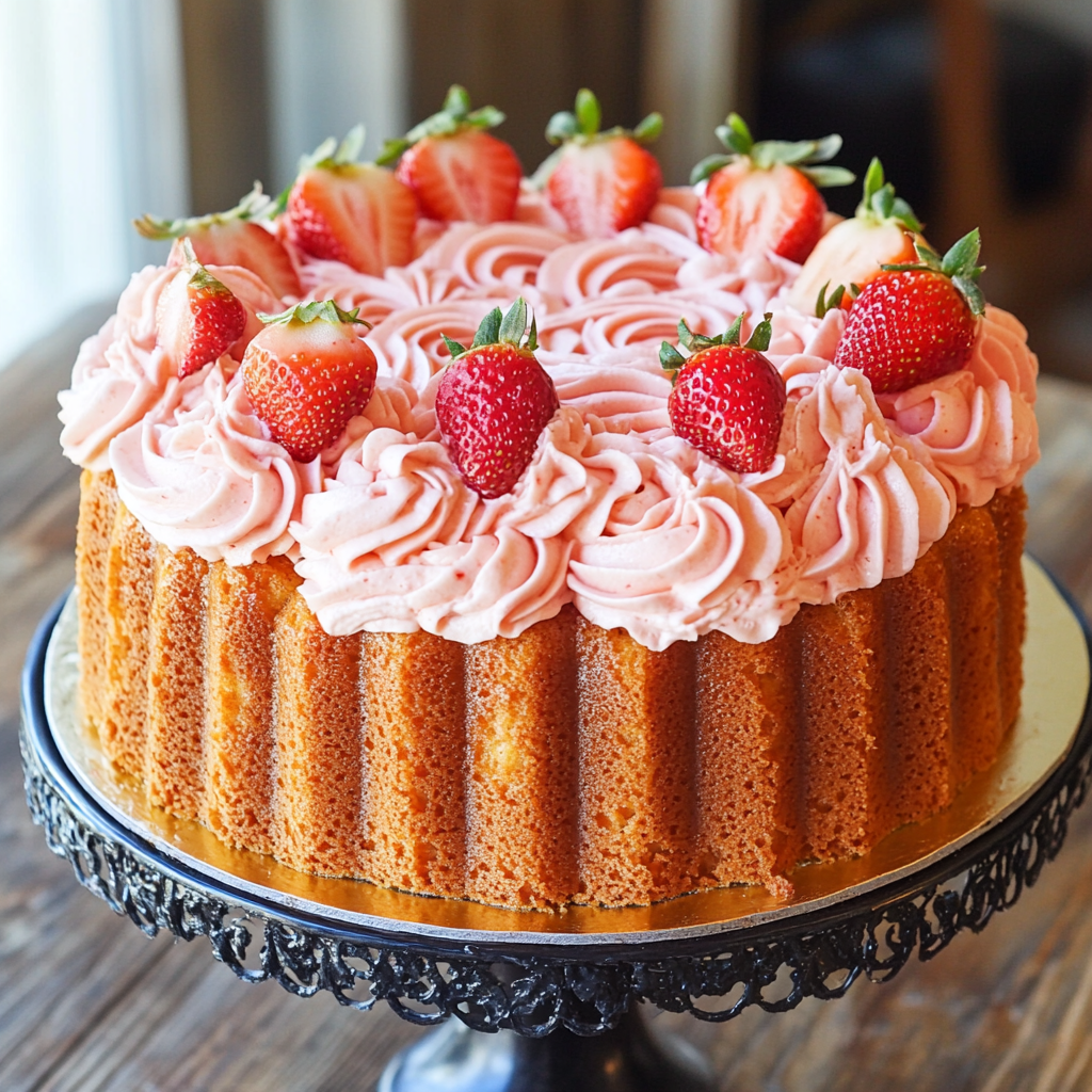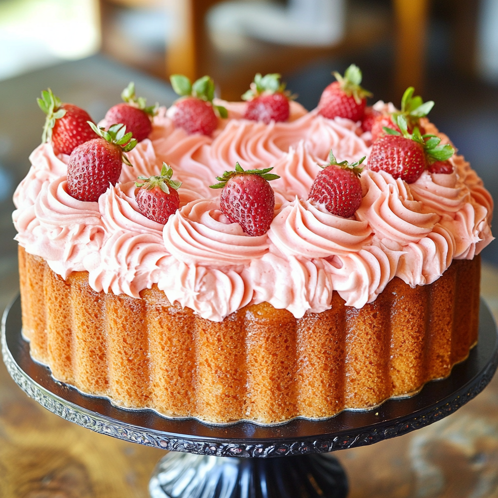 Strawberry Honeybun Cake with Strawberry Cream Icing